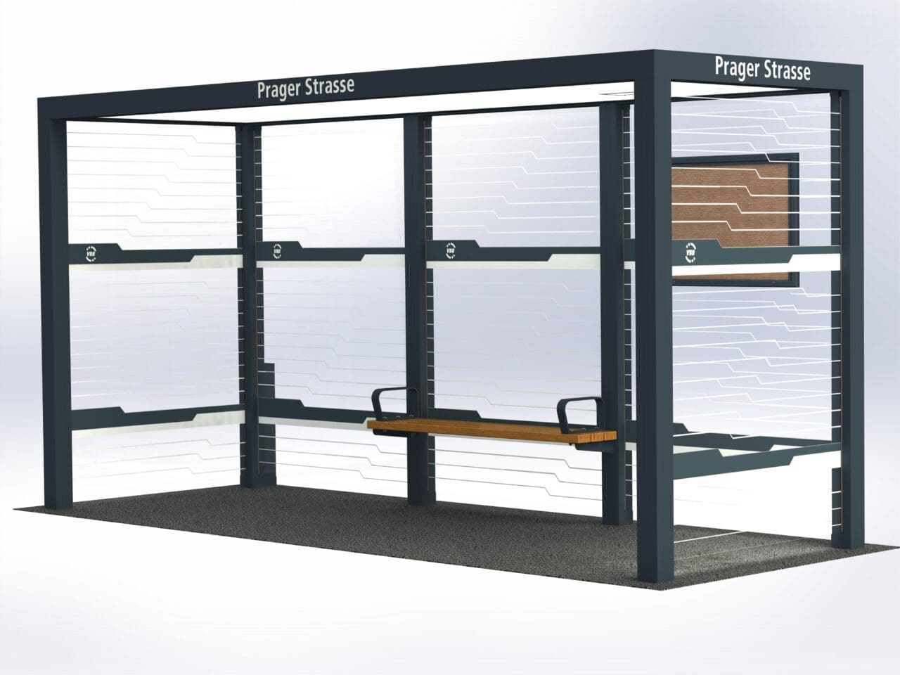 Eine moderne Haltestelle muss sowohl sicher als auch komfortabel sein. Unsere Wartehallen bieten wind- und regengeschützte Aufenthaltsbereiche, klare Sichtlinien, sowie die Möglichkeit, digitale Fahrgastinformationen, Ticketautomaten, Abfallbehälter oder Fahrradständer zu integrieren. Ergänzende Sitz- oder Anlehnmöglichkeiten erhöhen den Komfort zusätzlich.