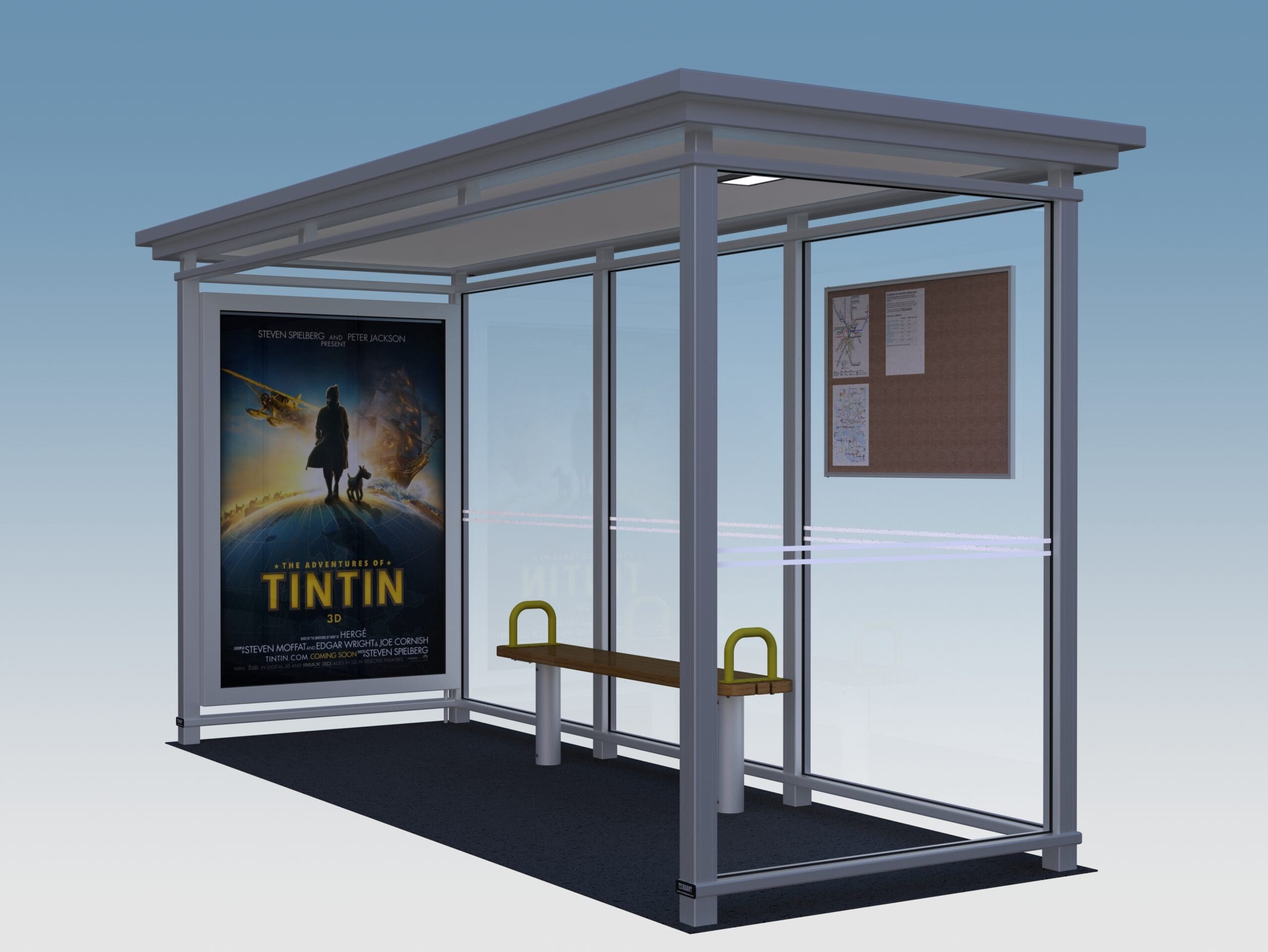 Informationsvitrine, CLP-Werbevitrine, Sitzbank oder Abfallbehälter nach Kundenwunsch,