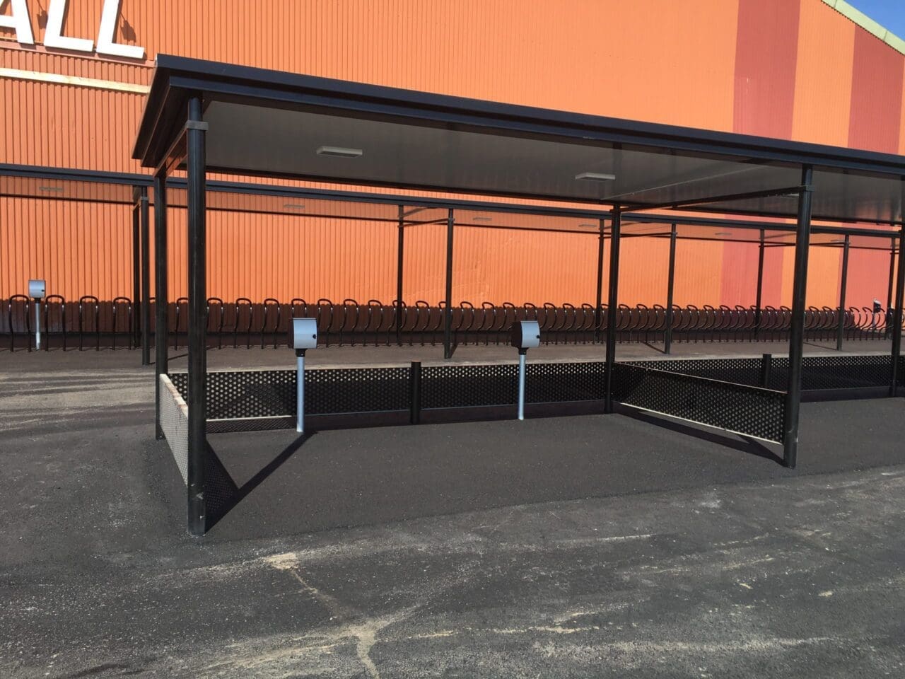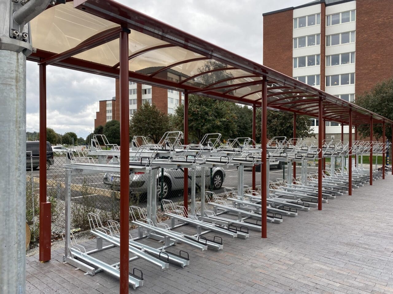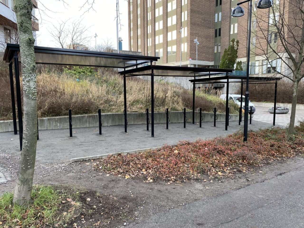 Cykeltak SHARP Plaza med Arc cykelställ, Nyköping