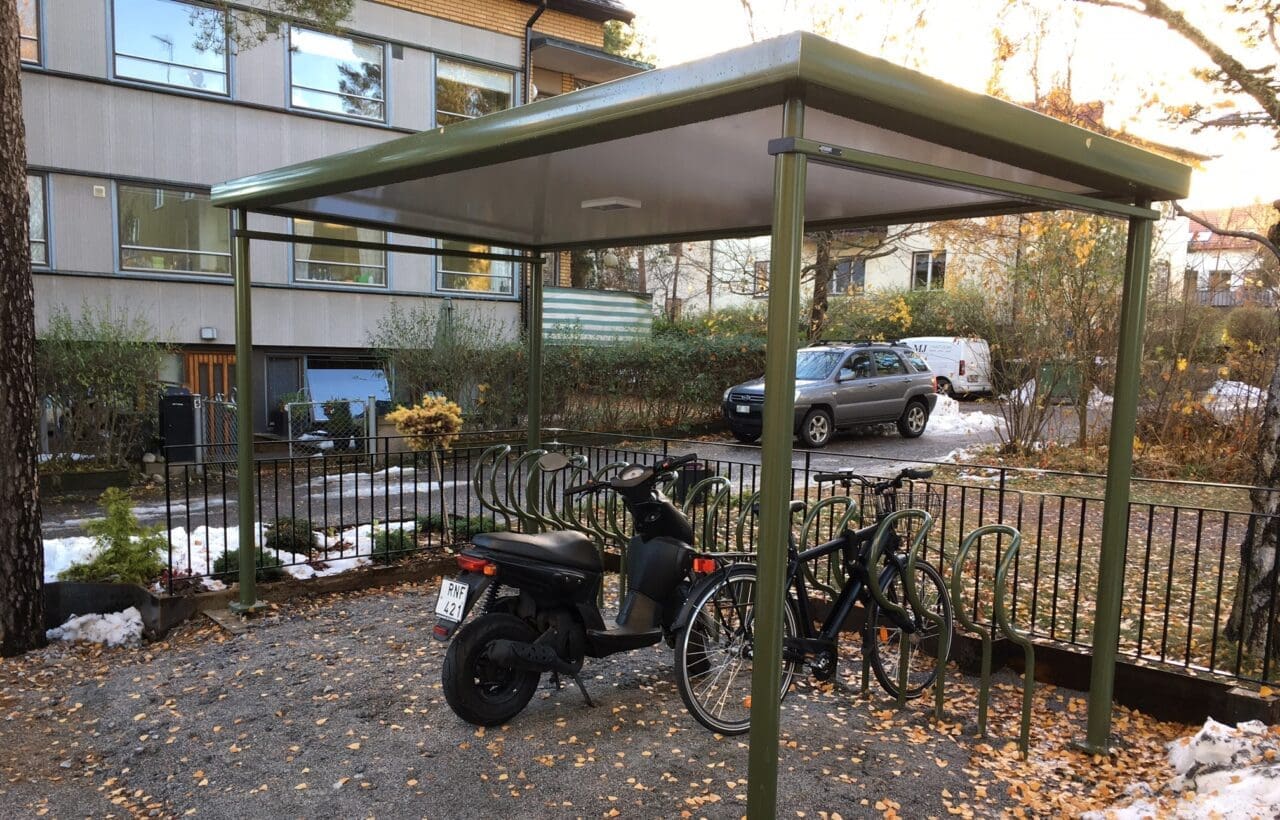 Cykeltak City 90 Plaza med Safe-X cykelställ, Åkersberga